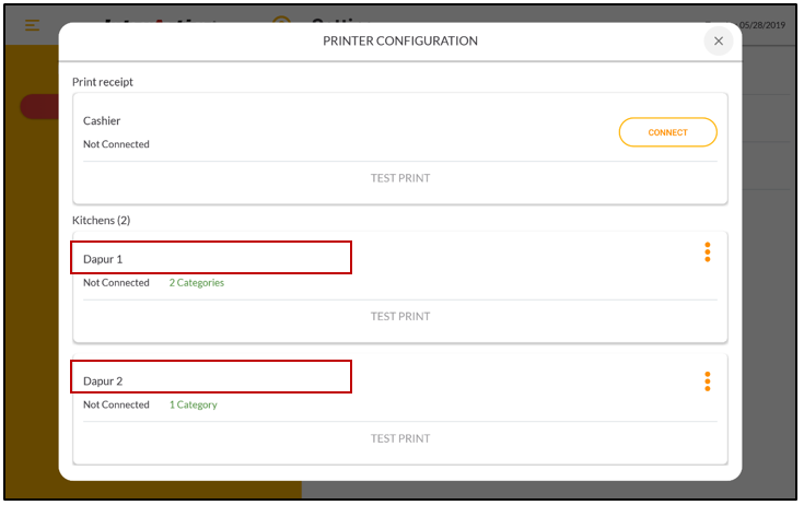 10. Selamat anda telah berhasil setting 2 Kitchen Print Out pada Back Office InterActive MyProfit.