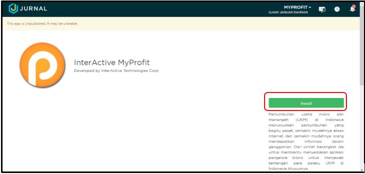 8. Klik INSTALL untuk menambahkan InterActive MyProfit sebagai Add On Jurnal.ID.