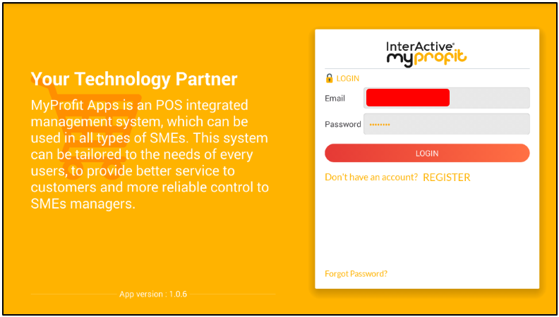 1. Login terlebih dahulu ke InterActive MyProfit Mobile Apps. Apabila kamu belum memiliki akun InterActive MyProfit kamu bisa mendaftar pada Link Ini