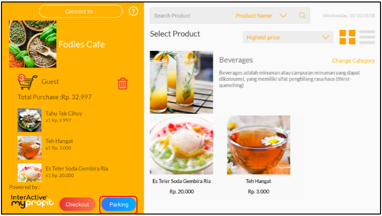 Cara Parking Order pada Aplikasi InterActive MyProfit. Parking Order bengfungsi apabila ketika proses order terjadi dan customer ingin menunda terlebih dahulu ordernya maka cashier bisa melakukan Parking Order ini.