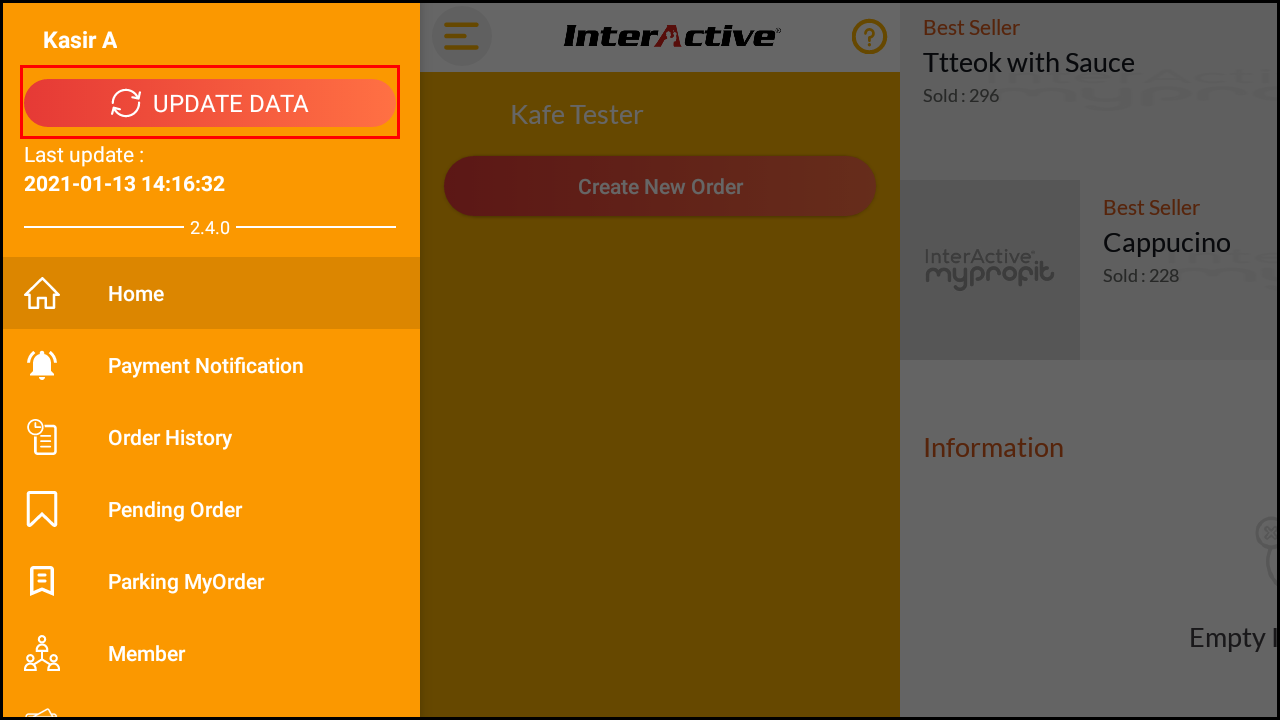 10. Selamat anda telah berhasil menambahkan dan menggunakan setting pajak baru pada InterActive MyProfit. Selanjutnya silahkan Lakukan Update Data atau Login Logout pada POS InterActive MyProfit untuk mengaktifkan settingan baru tersebut di POS InterActive MyProfit.