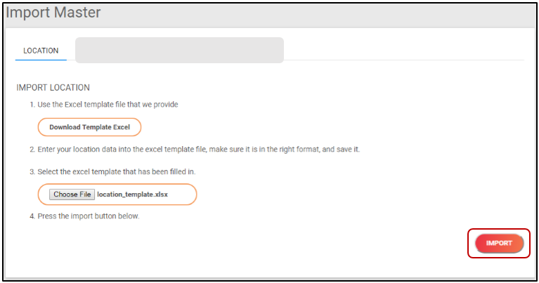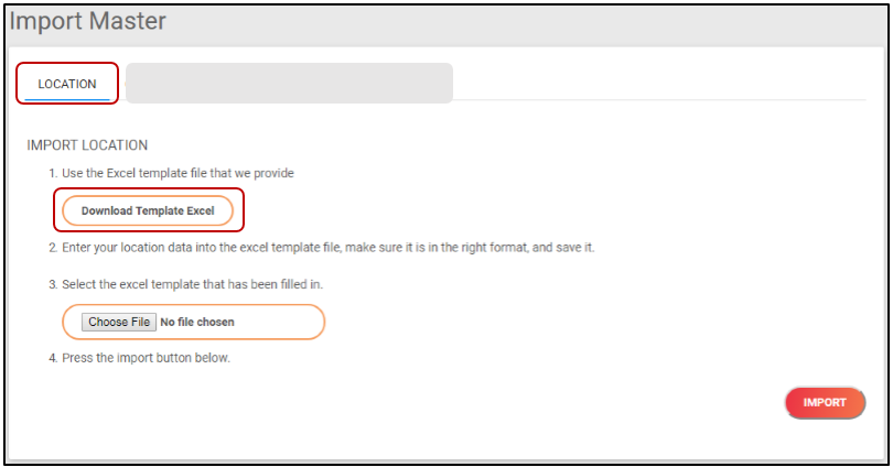 4. Pilih Location karena kita akan meng-Import Location pada kali ini, kemudian Download File Excel untuk mengisikan Lokasi Anda