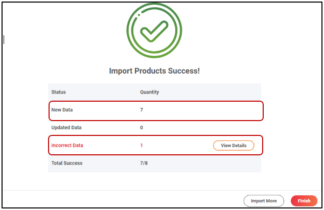 3. Incorrect Data : Menginformasikan jumlah data yang salah dan tidak berhasil pada proses Import Data tersebut, anda dapat melihat detailnya apabila terdapat data yang salah. Pada gambar di atas dapat dilihat bahwa ada satu data salah, maka periksalah data anda dengan klik View Details.