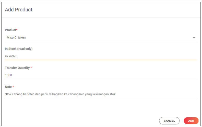 1. Product : Pastikan nama product tersebut sudah ada pada cabang yang akan dituju. Contoh Product "Nasi" maka pada Cabang lain harus bernama "Nasi" juga