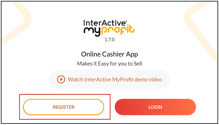 2. Setelah Aplikasi InterActive MyProfit terinstal pada Smartphone, Buka Aplikasi tersebut Klik Register.