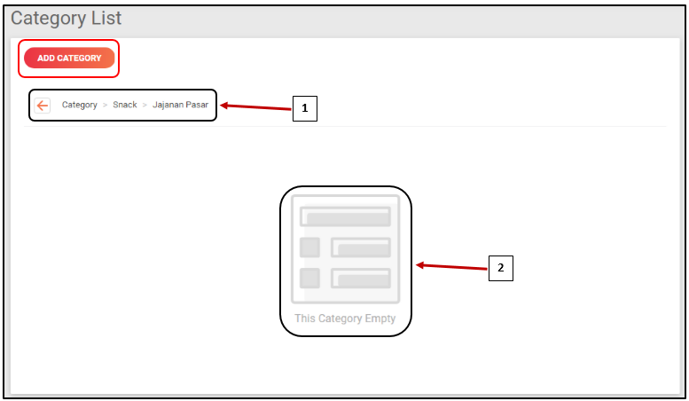 b. Nomor 2 : Menerangkan bahwa Sub Kategori Level 1 "Jajanan Pasar" belum memiliki Sub Kategori lainnya.