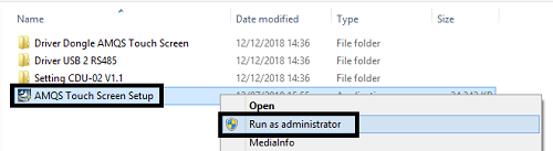 Klik kanan folder AMQS Touch Screen Setup kemudian pilih Run as administrator