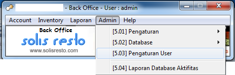 - Lalu pilih "admin", pilih "Pengaturan User".