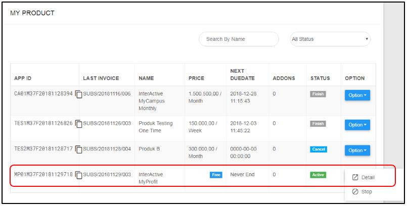2. Kemudian masuk ke Menu MyProduct pada bagian kiri menu