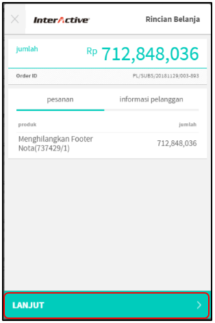 7. Seteleah itu anda akan masuk ke Proses Pembayaran. Klik Lanjut untuk melanjutkan proses pembayaran