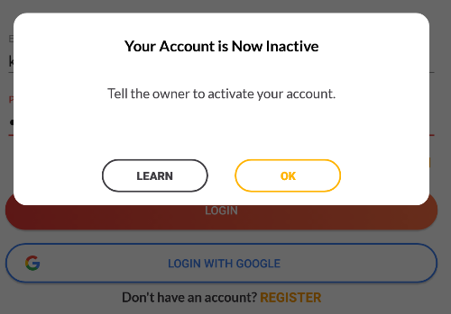Keterangan : User tersebut belum diaktifkan di back-office. Hal ini biasanya terjadi pada Account Cashier (Akun Kasir)