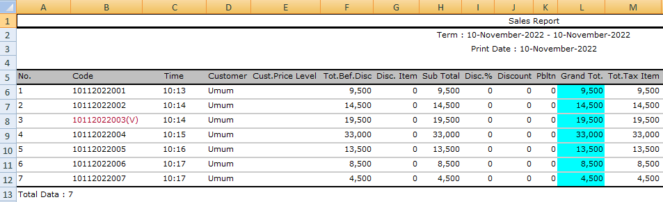 Maka Laporan Penjualan akan menampilkan data lebih detail