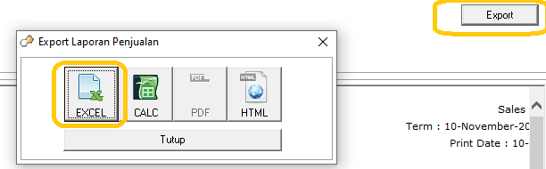 Export Laporan dalam format Excel