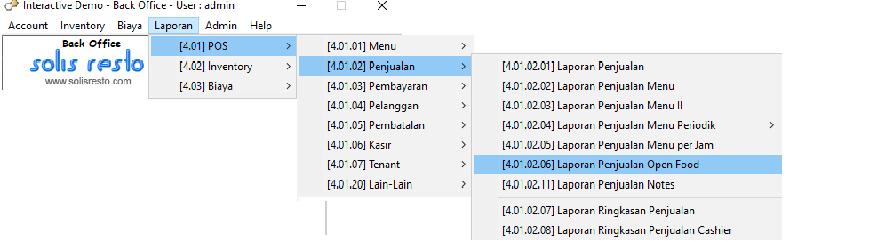 Kemudian klik menu laporan – POS – Penjualan – Laporan Penjualan Open Food