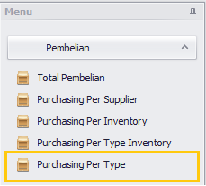 Untuk menampilkan laporan pembelian per type caranya berikut ini :