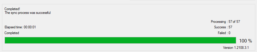 4. Jika proses singkronisasi menu berhasil maka akan muncul informasi "Completed 100%"