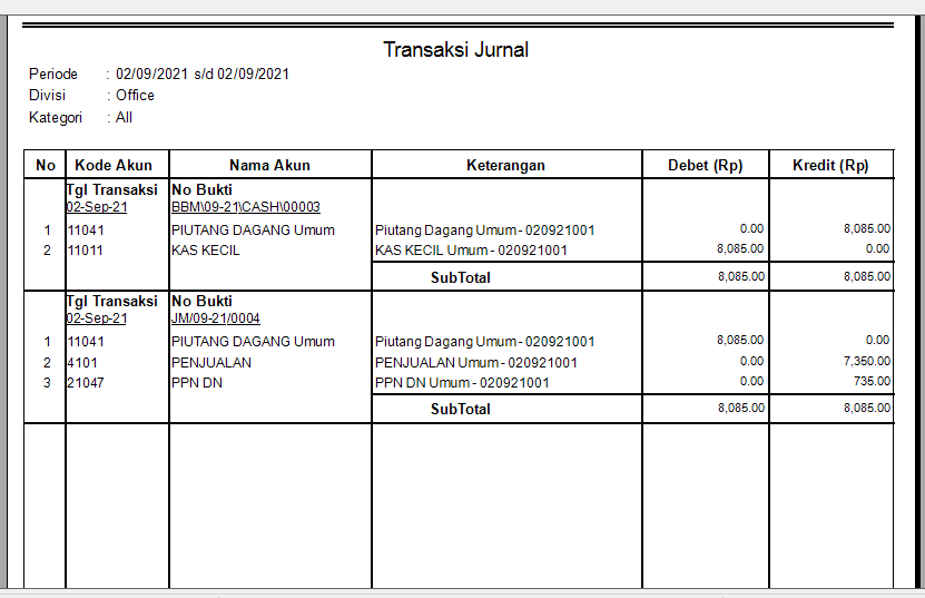 6. Lalu lakukan pengecekan di laporan Jurnal, apabila nominal Debet Kredit sudah sesuai dengan nominal bill di POS InterActive MyResto, maka proses singkronasasi penjualan & pembayaran berhasil