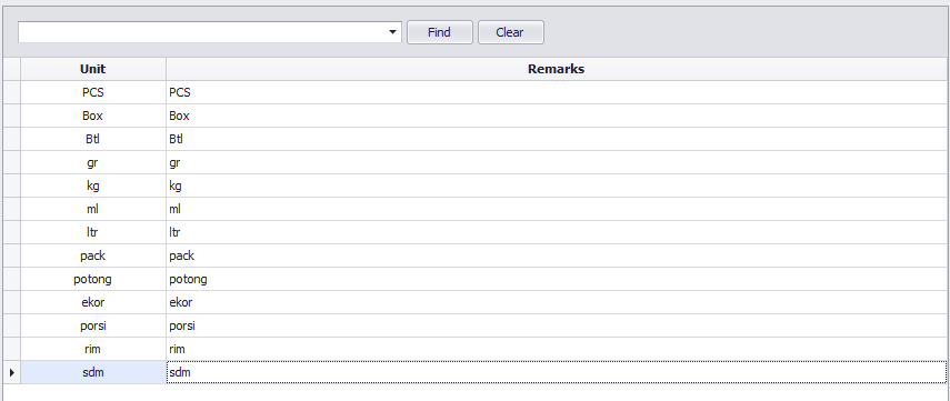 6. Nama unit yang berhasil disimpan akan tampil pada list UOM