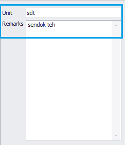 5. Maka akan muncul form entry Data Master UOM, isikan nama Unit & Remarks, kemudian klik tombol Save