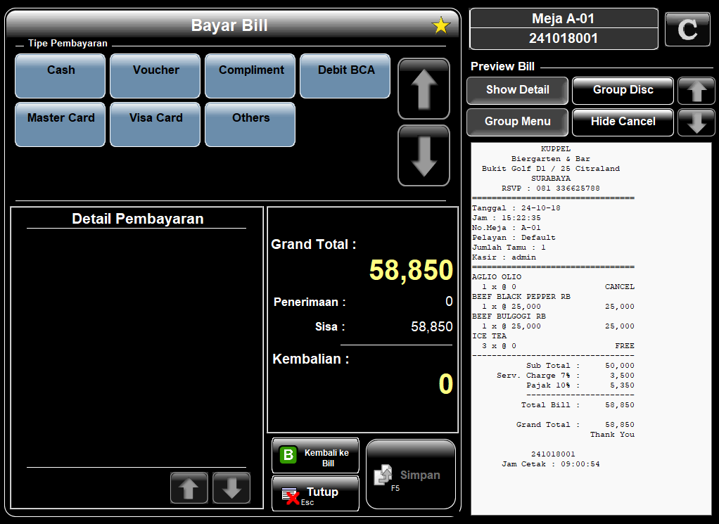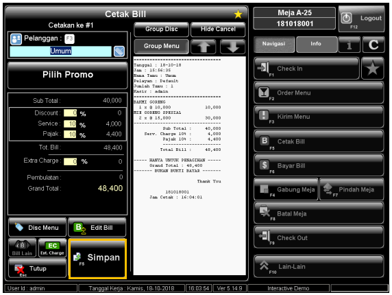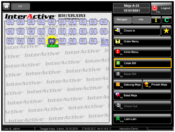 - Setelah memilih Cetak Bill anda bisa langsung menekan F5 untuk langsung mencetak Bill.