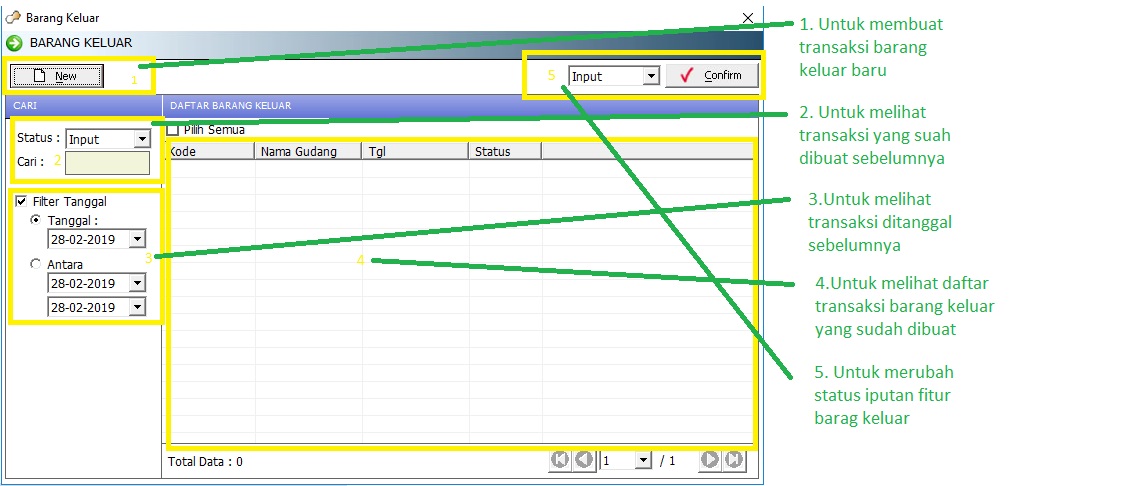 Ketika sudah klik fitur barang keluar , akan muncul gambar seperti dibawah ini