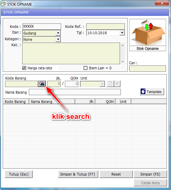 - Setelah selesai menginput data stock opname kita klik Simpan.