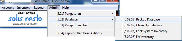 2. Pilih menu "Admin" > "Database" > "Backup Database"