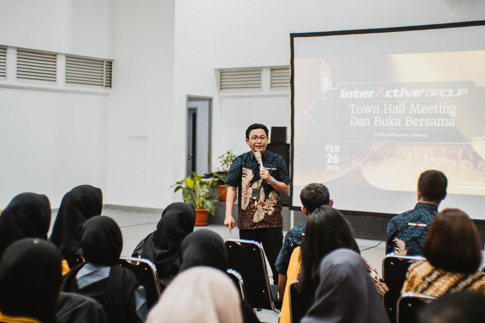 Acara Town Hall Meeting 2026 & Buka Bersama yang dilaksanakan pada Kamis, 26 Februari 2026 di Hall Bank Danamon Surabaya Gubernur Suryo Lt. 5 berjalan dengan lancar dan sukses. Seluruh jajaran karyawan hingga manajemen InterActive Group hadir dan mengikuti acara dengan penuh antusias.