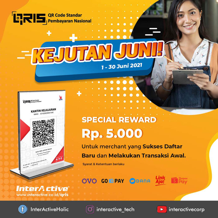 Special Reward sebesar Rp. 5.000, bagi merchant yang Sukses Daftar Baru dan melakukan Transaksi awal di bulan Juni.
