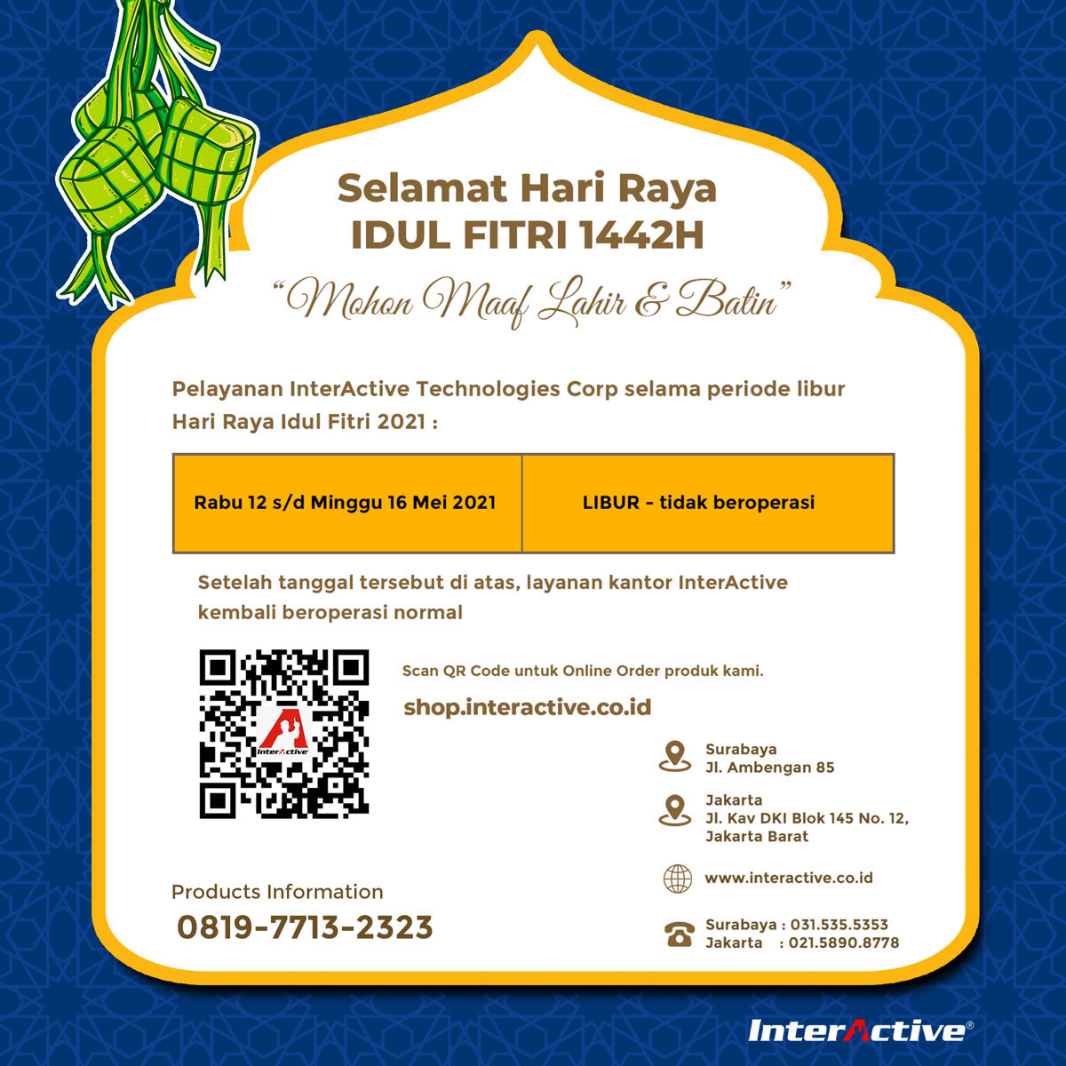 Dalam rangka menyambut Hari Raya Idul Fitri 2021, maka Management InterActive Technologies Corp menginformasikan Jadwal Libur Lebaran 2021 serta jadwal Aktif Kembali memberikan pelayanan Terbaik kepada Anda.