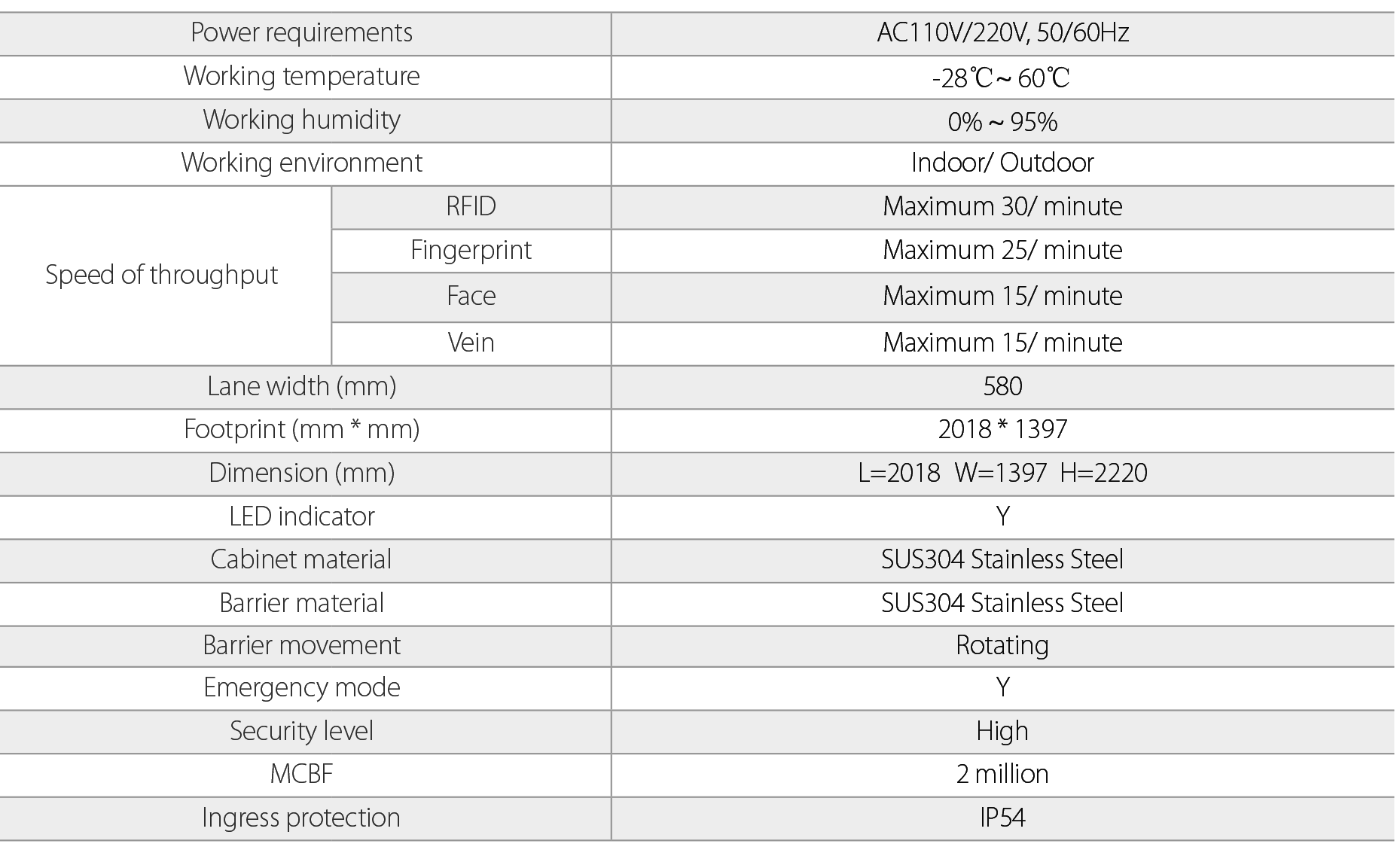 FHT2322D: Full Height Turnstile with Fingerprint and RFID Access Control System