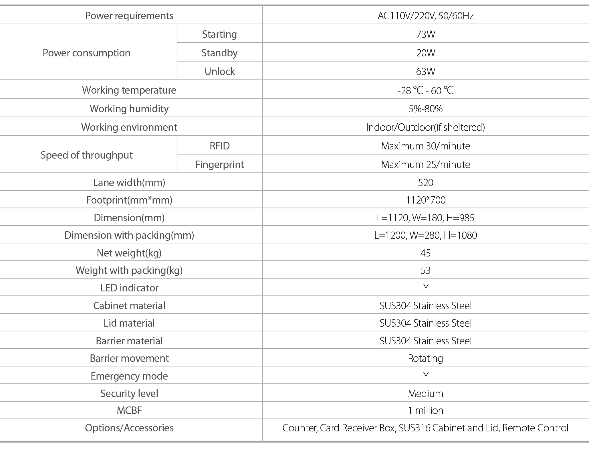 Setelah pembaca TS2100 (RFID dan / atau sidik jari) secara positif mengenali kartu akses yang valid atau sidik jari, lengan tripodnya terbuka, sehingga memungkinkanbagian pengguna ke sisi aman.