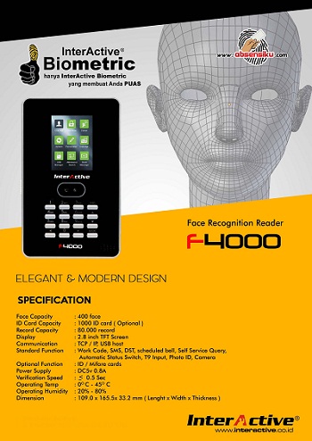 Hadir Model Terbaru Mesin Absensi Face ID F-4000 dengan Desain Modern dan Elegan. Urusan Absensi Menjadi Mudah dengan InterActive Face ID.