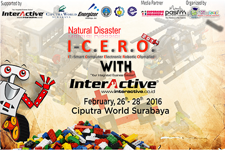 Kunjungilah Event "I.C.E.R.O" (It-smart Computer Electronic Robotic Olympiade) yang akan di adakan pada tanggal 26 - 28 february 2016 yang berlokasi di Ciputra World Surabaya. Event "I.C.E.R.O" yang sudah berlangsung ke 10 ini,InterActive Technologies Corp sebagai seponsor utama yang peduli dengan pendidikan. Event ini di dukung oleh ITS,electro ITS, Universitas Kristen Petra, Ciputra World, Energizer Holdings bertujuan mengenalkan kemajuan technologi robotika dan elektronik kepada masyarakat di usia dini melalui metode pembelajaran dengan fisualisai (funs learning) kepada masyarakat luwas.