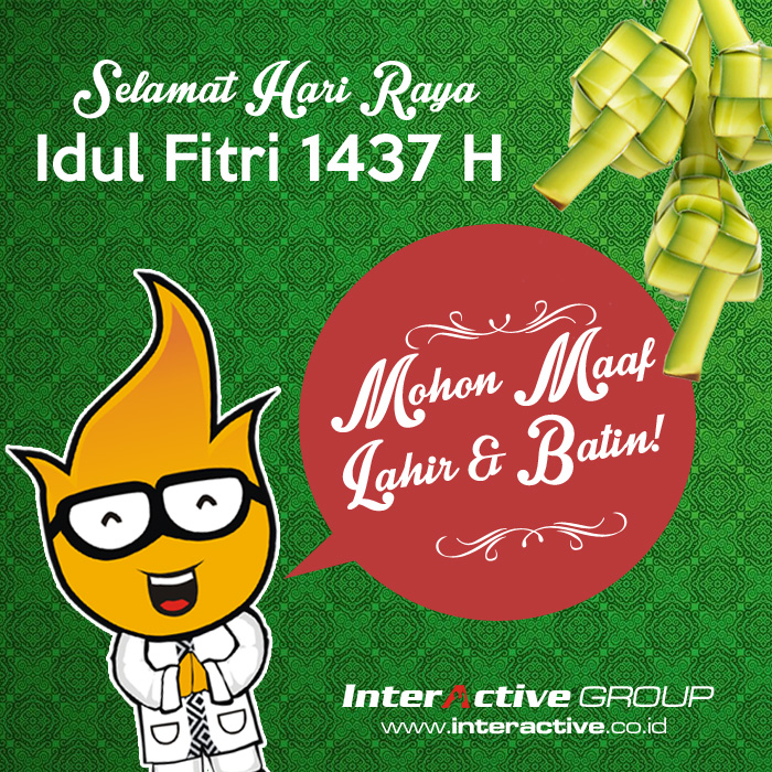 Selamat Idul Fitri 1437 H Minal Aidin Wal Faidzin, mohon maaf Lahir & Batin. Libur Lebaran InterActive mulai tanggal 3 Juli s/d 10 Juli 2016. Kembali aktif tanggal 11 Juli 2016.