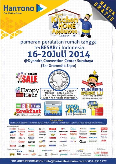 Hartono The 3rd Kitchen & Home Appliances Exhibition - Pameran peralatan rumah tangga terbesar di Indonesia. Acara ini juga menghadirkan Cooking Class with Celebrity Chef. Dilaksanakan pada 16 – 20 Juli 2014.